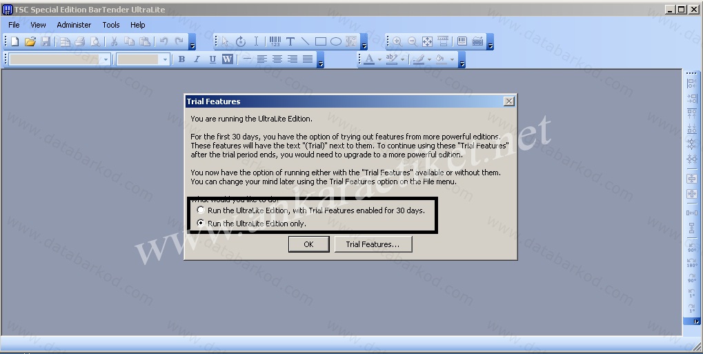 Not: Bartender UltraLite Sürümünü Tam Sürüm Olarak Kullanabilmeniz İçin Aşşağıdaki Adımı Uygulayınız.